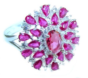 Rubin Ring 925 Sterling Silber Statement roter Edelstein Gr: 7,25 6,5ct Unikat