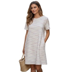 Loft Etuikleid Tweed Struktur Kleid L Creme Sommer Frühling Freizeit Coastal Neu mit Etikett