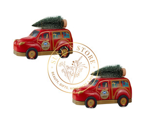 Auto mit Baum Keksdosen x2 - Festlich Rot Auto Shortbread Sammlerstück Geschenk