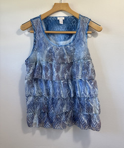 Chicos ärmelloses Damen-Tanktop Stufen Spitze Rüschen 2 L 12 blau Blumenmuster U-Ausschnitt