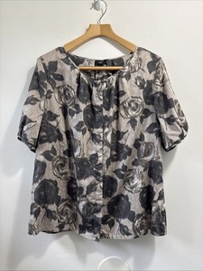 Talbots geblümte rosa Knopfleiste Bluse Damen Plus 16 W Kurzarm weiche Baumwolle