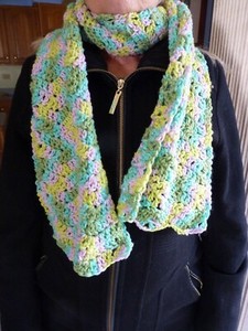 This is a lovely handmade knit hat and matching crocheted scarf that is a pretty shade of pink! It was sent quickly (in the specified time frame) and well packaged with other items including an adorable hand crocheted purse! I love all of it! I am pleased with the transaction and recommend this seller!