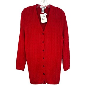Talbots Vintage Zopfmuster Cardigan Pullover Damen Large rot Fischer klassisch