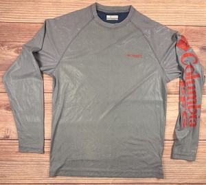 Columbia PFG Reflective Shirt Herren Small dunkelblau Spellout Performance Sun Pro