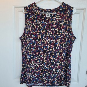 Anne Klein L Top Stretch Abstrakte Prints Herbst V-Ausschnitt Bluse Weich Ärmellos EUR 5,12Bisher: EUR 6,40