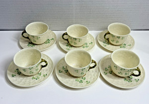 6er Set Belleek Ireland Classic Shamrock Mini Teetasse & Untertassen Set