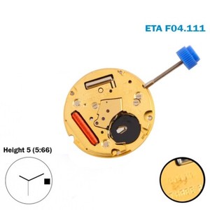 ETA F04.111 Schweizer Uhrwerk, weiße Datumsscheibe bei 3, Höhe 5 (5,66 mm).