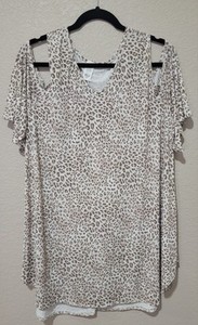 Top Bluse Damen 2XL Cut Out Schulter Animal Print Kurzarm Stretch Neu ohne Etikett