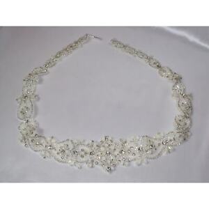 Weiß AB Strass Kristall Applikation Braut Hochzeit Abschlussball Party Formell Schärpe Gürtel