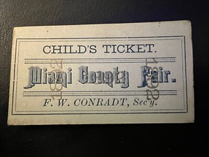 SELTENES 1892 MIAMI COUNTY FAIR PERU INDIANA KINDERTICKET mit FAHRRADSPONSOR C60