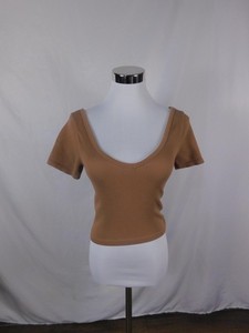 Bozzolo hellbraunes geripptes Strick bauchfreies Oberteil tiefer U-Ausschnitt M/L